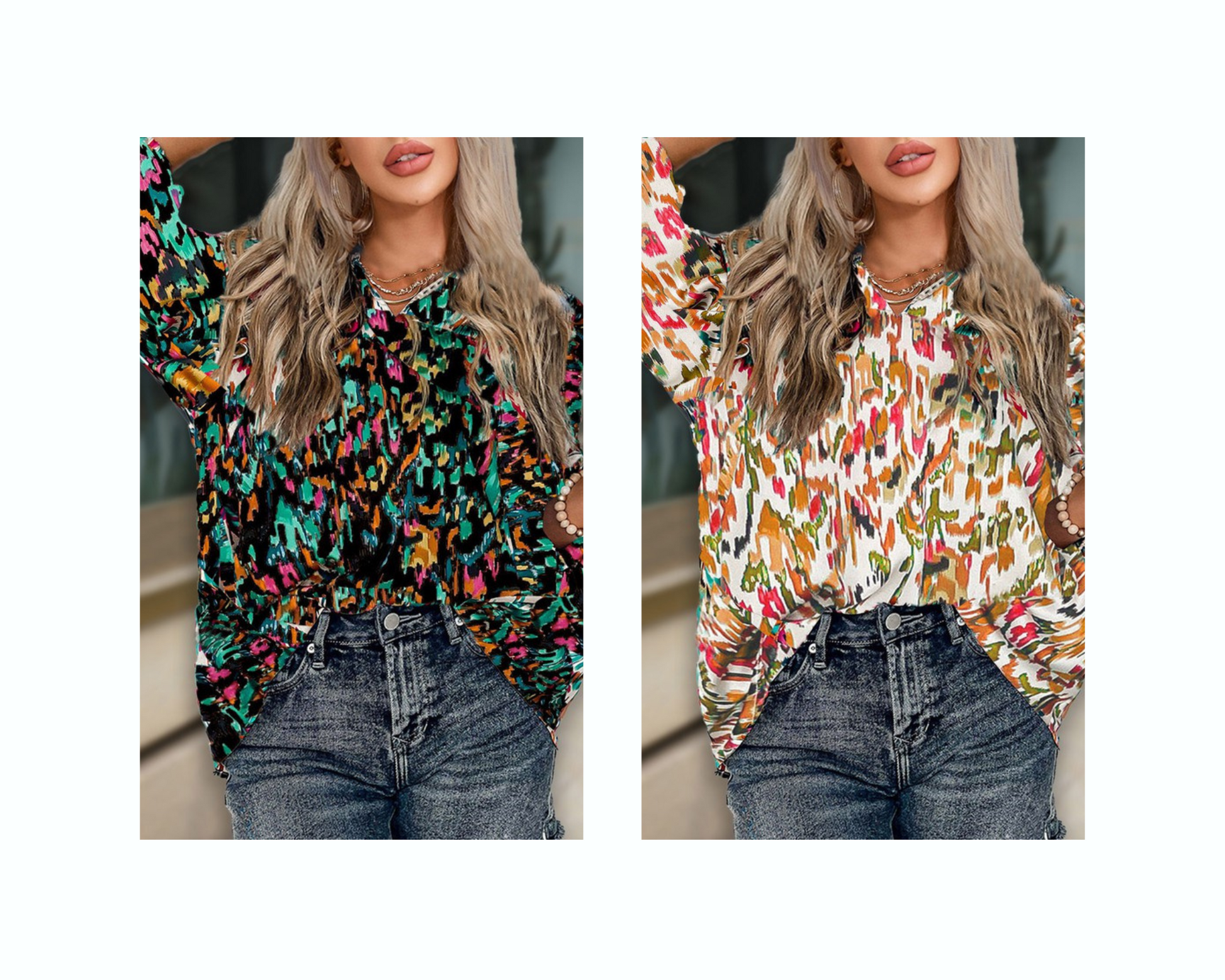 These Annie Tops feature a multicolor abstract print with ruffle details, a split V-neck , 3/4 puff sleeves with elastic cuffs for an elegant look. Perfect for making a statement and standing out. Fit is flowy and comfortable, colors available are white or black. 100% Polyester