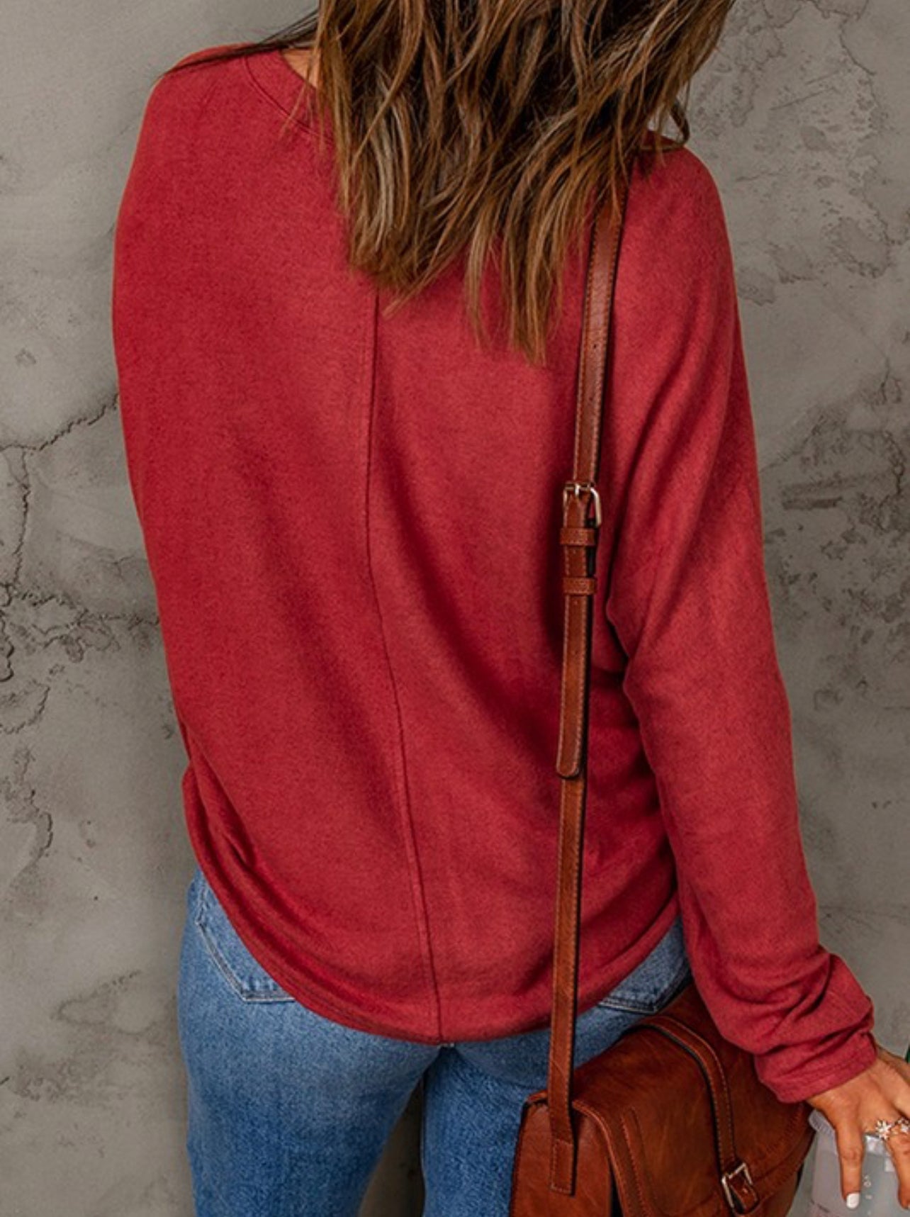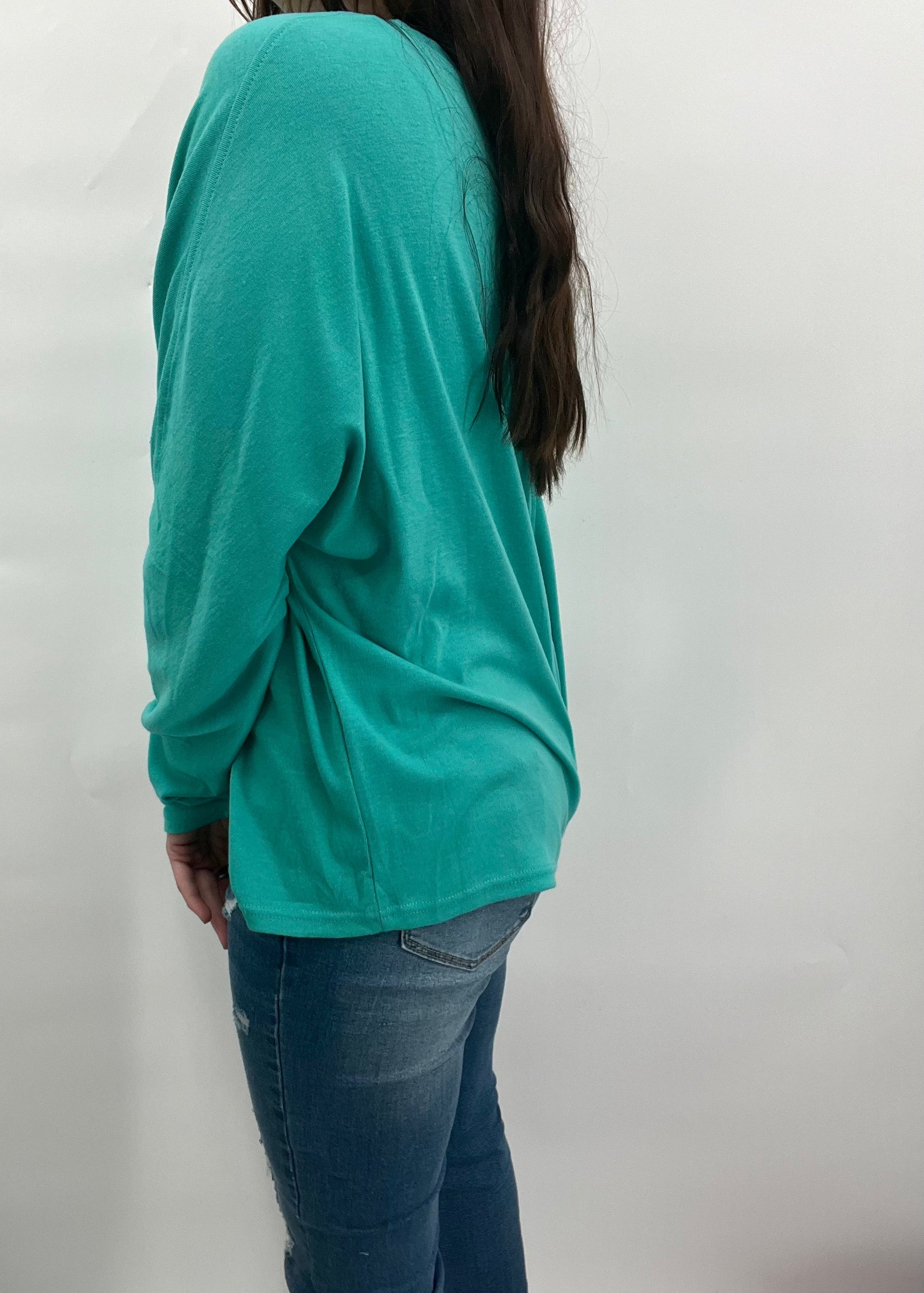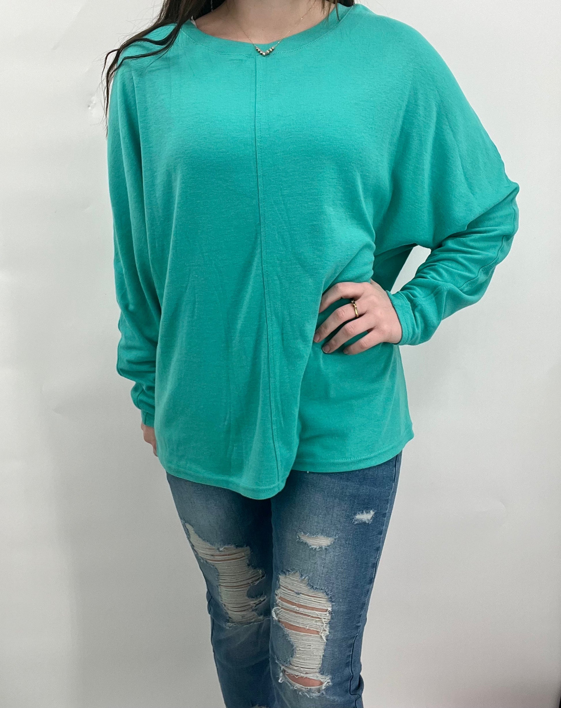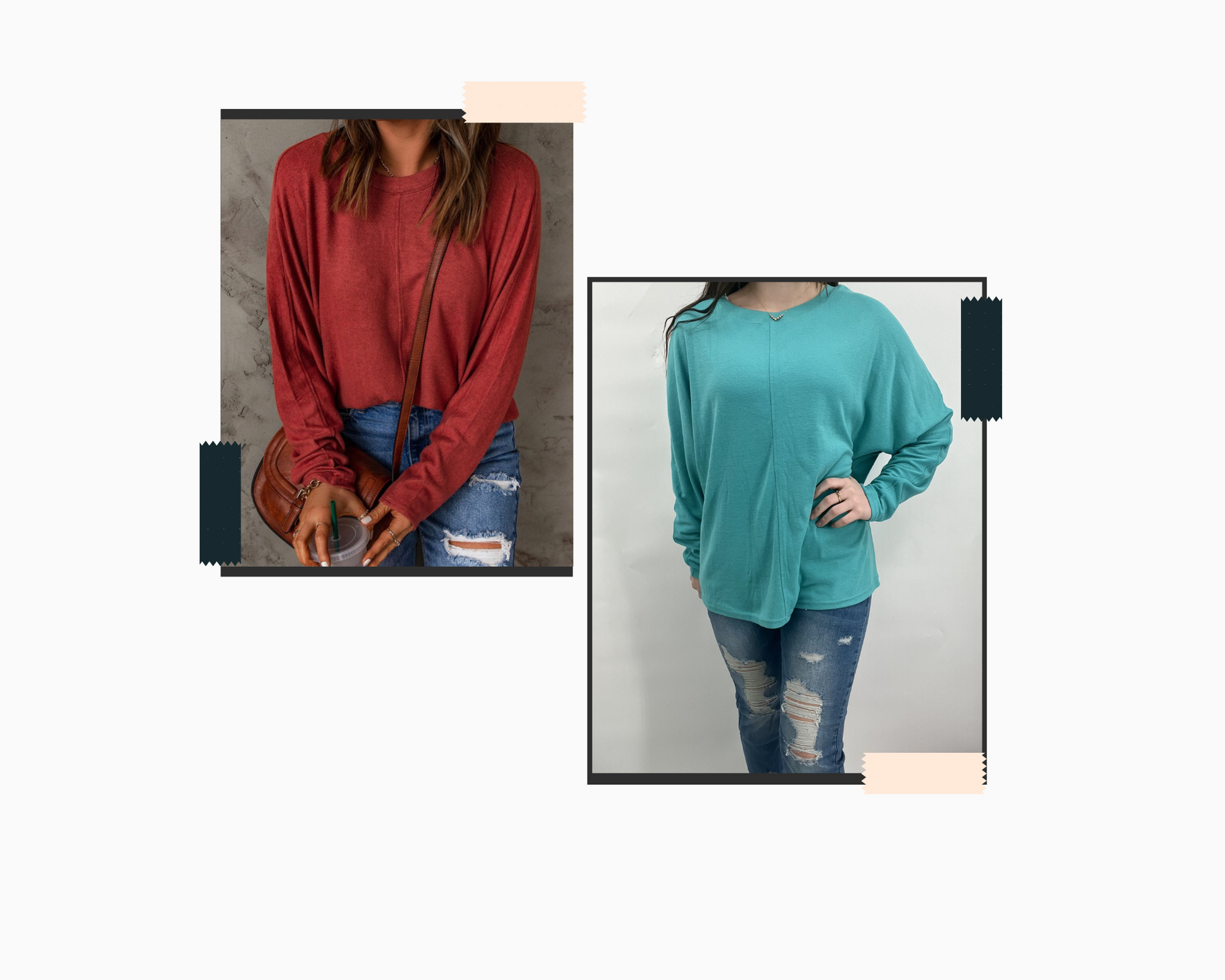 This casual lightweight top is simple and very versatile. Crew neckline, long sleeves, in solid colors.