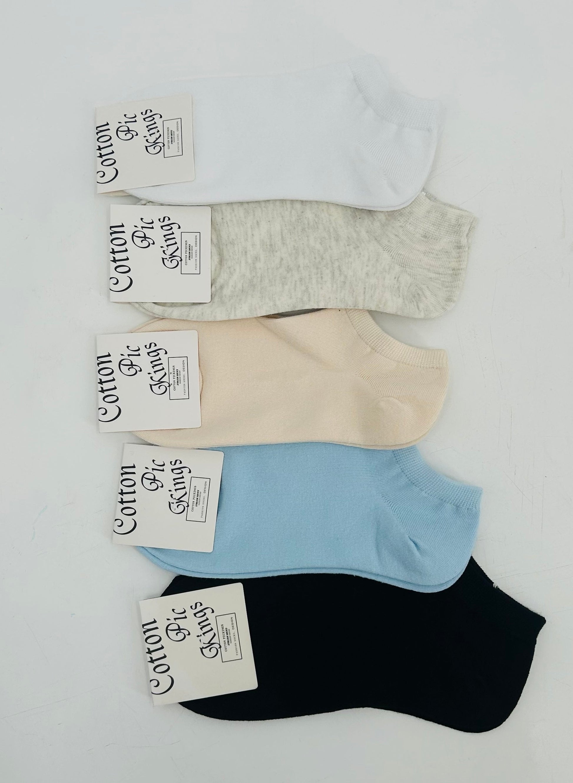 This Neutral-ish Sock Set of 5 is crafted with a high-quality fabric blend of 85% cotton, 5% spandex, and 10% polyester for superior comfort. The socks are lightweight and breathable, making them perfect for casual or active wear. They are no-show and one size fits most.